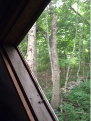 Let's not call it hiding. Let's say it is climbing ladder in chapel zendo to loft, opening glass window to screen, and sitting in white cushioned metal chair looking out to trees shading hermitage path.